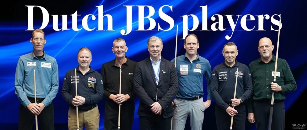 Op de foto zien we Paul Bruistens, Harrie van de Ven, Frans van Schaik, Harry Mathijssen van Eureka Billard, Jeffrey Jorrissen, Nederlands kampioen Jean van Erp en Adrie Demming. Samen vormen zij een sterk team dat met trots de naam van JBS vertegenwoordigt binnen de Nederlandse biljartsport.